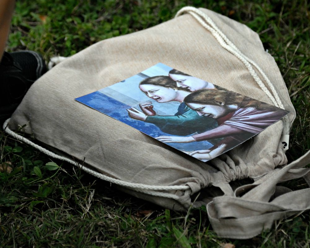 Il progetto nidi di ragno prevedeva la consegna ad ogni partecipante di un kit di oggetti tra cui una custodia pensata per raccogliere le dispense di un libro in divenire ma anche piccoli oggetti nei boschi, lungo i sentieri, una foglia, un fiore, un sasso o un filo d’erba, una guida per attraversare sentieri di conoscenza.